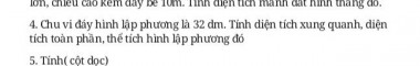 4. Chu vi đáy hình lập phương là 32 dm. Tính diện tích xung quanh, diện