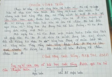 Suy nghĩ của em về bài học cuộc sống được rút ra từ câu chuyện trên