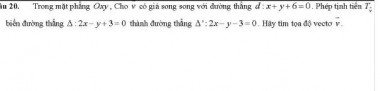 iu 20. Trong mặt phẳng Oxy, Cho v có giá song song với đường thẳng d:x+y+6=0. Phép tịnh tiến T