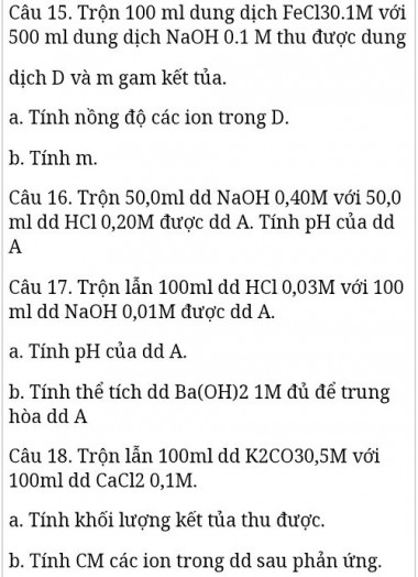 Tính nồng độ các ion trong D