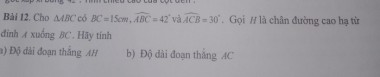 Bài 12. Cho A4BC có BC=15cm,ABC =42° và ACB=30°. Gọi H là chân đường cao hạ từ