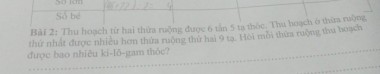Bài 2: Thu hoạch từ hai thửa ruộng được 6 tấn 5 tạ thóc. Thu hoạch ở thửa ruộng