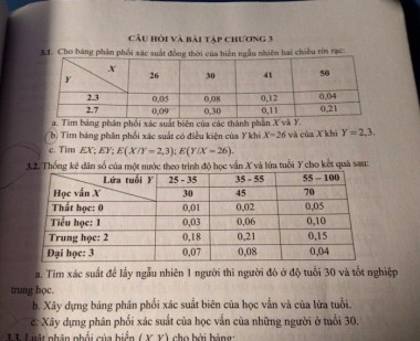 Cho bảng phân phối xác suất đồng thời của biến ngẫu nhiên hai chiều rời rạc