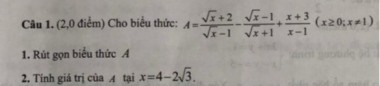 Câu 1. (2,0 điểm) Cho biểu thức: A =