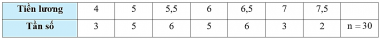 Điều tra tiền lương hàng tháng (đơn vị: triệu đồng) của 30 công nhân của một xưởng may, ta có bảng phân bố tần số như sau: