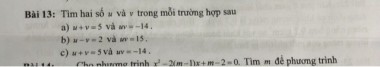 Bài 13: Tìm hai số u và v trong mỗi trường hợp sau