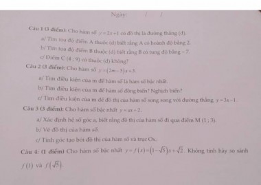 Cho hàm số y=2x+1 có đồ thị là đường thẳng (d)