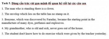 Dùng cấu trúc rút gọn mệnh đề quan hệ viết lại các câu sau