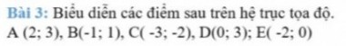 Bài 3: Biểu diễn các điểm sau trên hệ trục tọa độ.