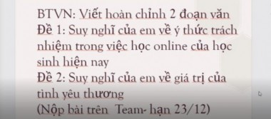 ----- Nội dung dịch tự động từ ảnh ----- Transitions Animations Side Show Review View Recording Developer Help nknoe ClassPoirt Share Comme Prnd A A AE-E- BIUS AY- Aa- 2-A. EE Frplace Shapes Arange Quck Styles D Setect Dictate Design dens Shupe ecs Fert Paragph Dring totng Voce Denigner BTVN: Viết hoàn chỉnh 2 đoạn văn Đề 1: Suy nghĩ của em về ý thức trách nhiệm trong việc học online của học sinh hiện nay Đề 2: Suy nghĩ của em về giá trị của tình yêu thương (Nộp bài trên Team- hạn 23/12)